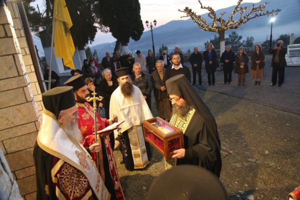 Η έλευση του ιερού Λειψάνου πραγματοποιήθηκε χθες το απόγευμα μετά από αίτημα του Εκκλησιαστικού Συμβουλίου του Ιερού Ναού αγίου Πολυκάρπου Μαμουλάδας και έγκριση του αιτήματος από τον Μητροπολίτη Ναυπάκτου και Αγίου Βλασίου κ. Ιερόθεου.