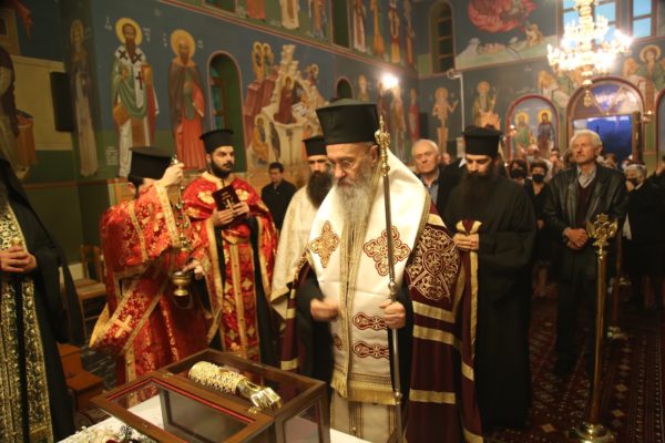 Το ιερό Λείψανο παρέμεινε στον Ιερό Ναό για προσκύνηση από τους πιστούς μέχρι τις 9:00 μ.μ.
