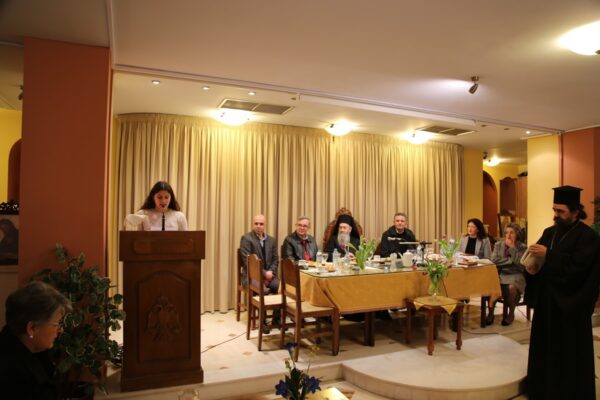 Η κ. Μαρία Σύψα-Κουτούση, μιλώντας εκ μέρους της Επιτροπής αξιολόγησης, παρουσίασε το θέμα και περιέγραψε τον τρόπο εργασίας της Επιτροπής και τα βασικά στοιχεία που κινήθηκαν οι εργασίες των μαθητών, αντλώντας νοήματα και απαντήσεις για τα σύγχρονα θέματα από κείμενα του αγίου Γρηγορίου του Θεολόγου.