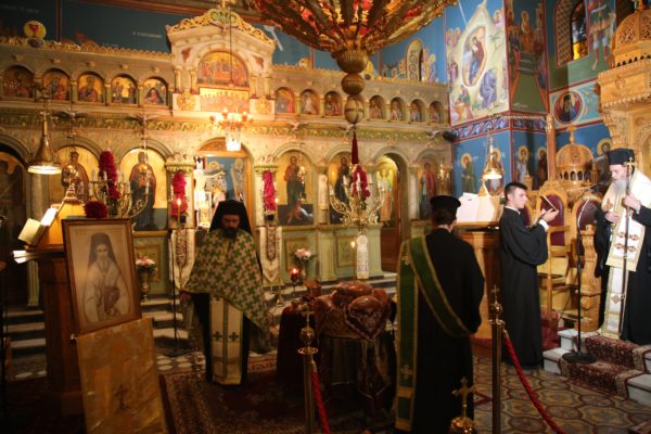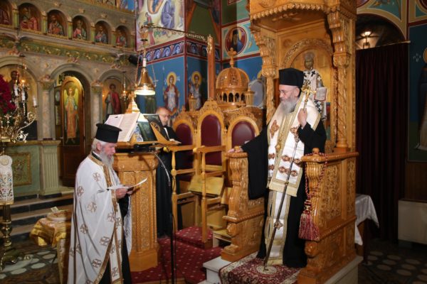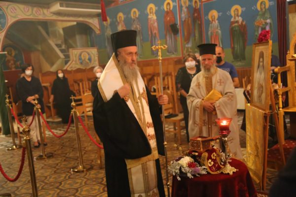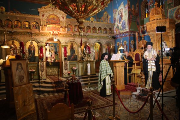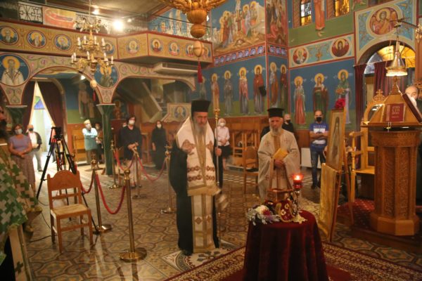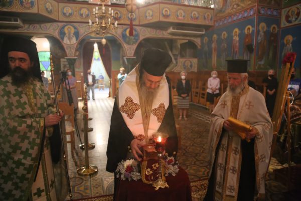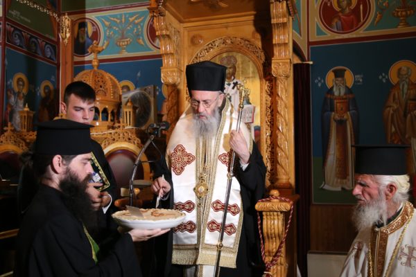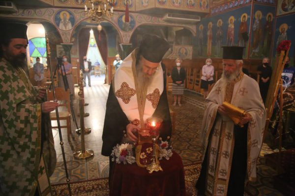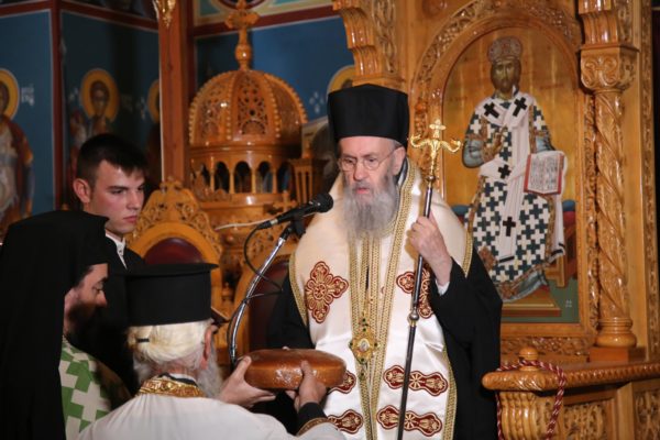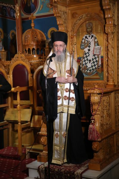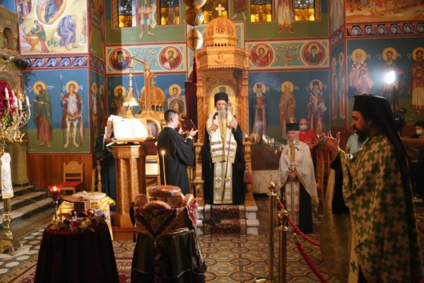 Εν συνεχεία ο Σεβασμιώτατος τέλεσε Δέηση, Αρτοκλασία και ευλόγησε τα εορταστικά κόλλυβα του Αγίου.