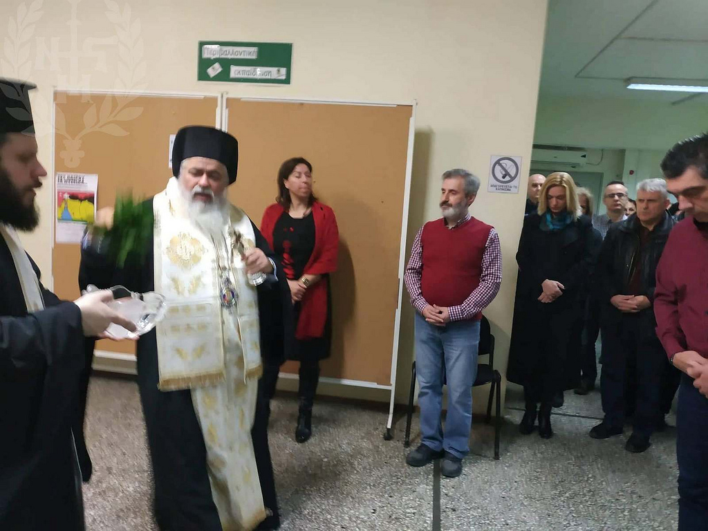 Την Πέμπτη 24 Ιανουαρίου 2019 ο Σεβασμιώτατος Μητροπολίτης Νεαπόλεως και Σταυρουπόλεως κ. Βαρνάβας επισκέφθηκε τα γραφεία των Διευθύνσεων Πρωτοβάθμιας και Δευτεροβάθμιας Εκπαίδευσης Δυτικής Θεσσαλονίκης, στη Σταυρούπολη, για να τελέσει την Ακολουθία του Αγιασμού και να ευλογήσει την Αγιοβασιλόπιτα του νέου έτους.