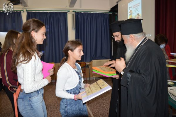 Ο Μητροπολίτης Νεαπόλεως και Σταυρουπόλεως κ. Βαρνάβας πρόσφερε στους 3 νικητές ως δώρο ευλογίας από ένα power bank και από ένα φλασάκι στους δυο επόμενους, ως προς τη βαθμολογία, ενώ στους εκπαιδευτικούς που πλαισίωσαν το διαγωνισμό ο Ποιμενάρχης της Δυτικής Θεσσαλονίκης χάρισε μια αναμνηστική κούπα. Όλοι οι διαγωνιζόμενοι μαθητές έλαβαν βεβαίωση συμμετοχής και ένα ντοσιέ.