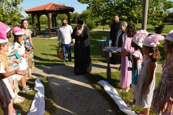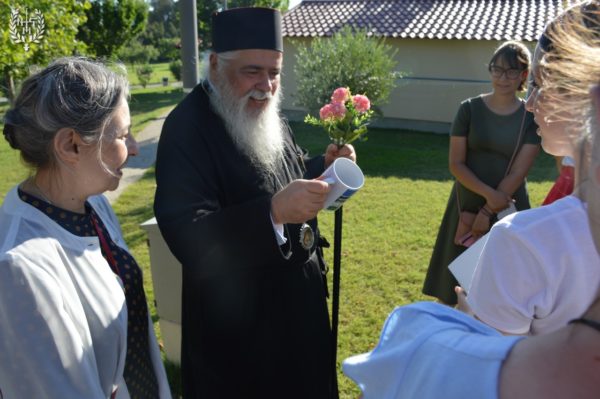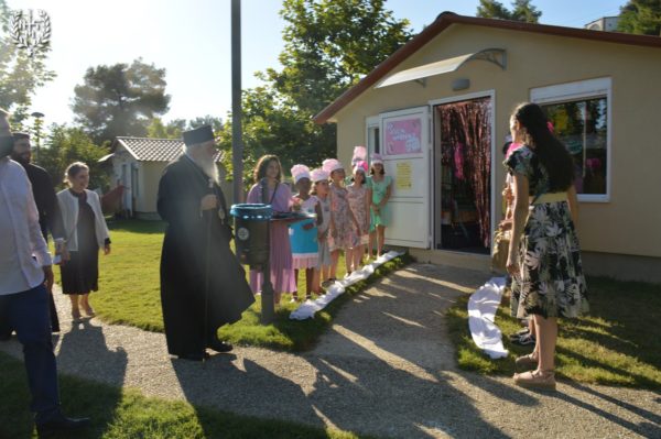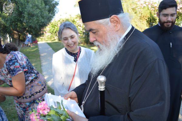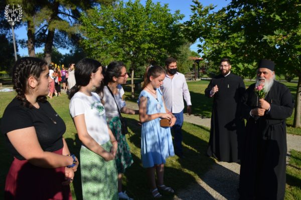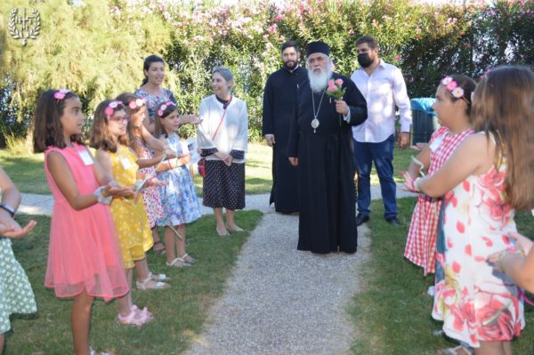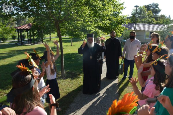 Ο Σεβασμιώτατος, αφού τέλεσε τον αγιασμό, στη συνέχεια πέρασε από όλες τις ομάδες και έγινε αποδέκτης του σεβασμού και της αυθόρμητης αγάπης των παιδιών. Επιθεώρησε τα όμορφα – και συμβολικά – διακοσμημένα δωμάτια και με χαρά έλαβε τα δώρα των μικρών κατασκηνωτριών.