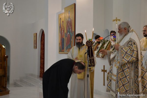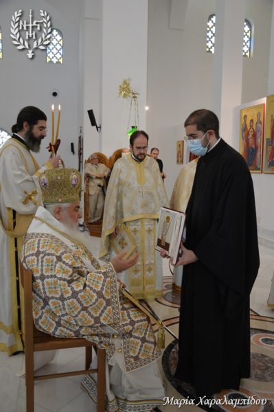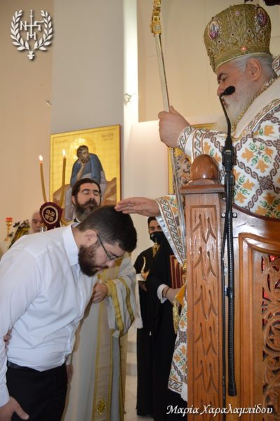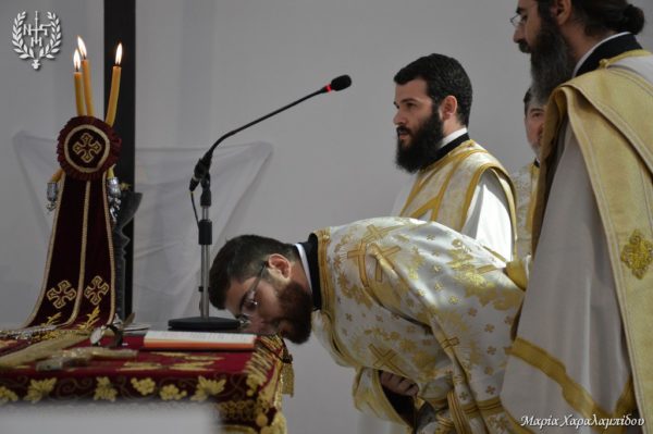 Ο Σεβασμιώτατος ευχαρίστησε τον πρωτοπρεσβύτερο π. Βασίλειο Μήλιο, πνευματικό πατέρα του υποδιακόνου για την πνευματική καθοδήγηση που του πρόσφερε.