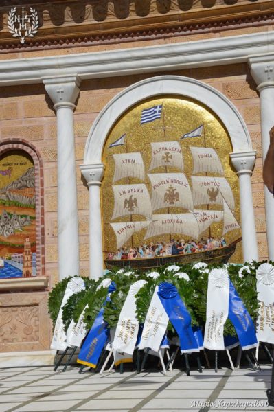 Επισφράγισμα υπήρξε η ομιλία της αντιπεριφερειάρχη κ. Β. Πατουλίδου και η κατάθεση στεφανιών μπροστά στο ψηφιδωτό στο οποίο αριστουργηματικά αποτυπώνεται το καράβι της ελπίδας με τις ονομασίες των αλησμόνητων πατρίδων.