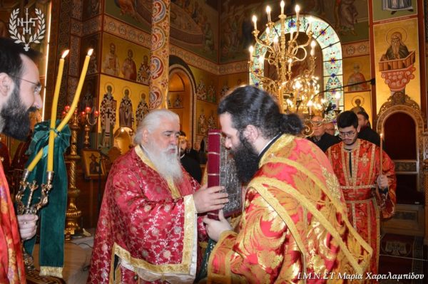Λίγο πριν το πέρας της Θείας Λειτουργίας, ο Σεβασμιώτατος απένειμε το οφίκιο του πρωτοπρεσβυτέρου στον π. Ιωάννη Μεχτερίδη.