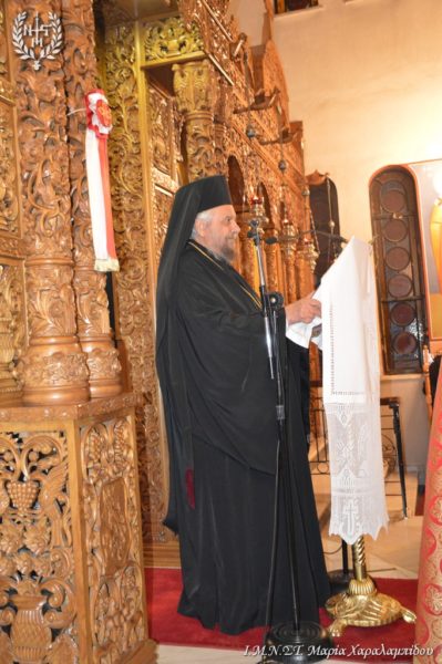 Ο Πρωτοσύγκελλος , Πανοσιολογιώτατος Αρχιμανδρίτης π. Διονύσιος Πατσάνης, στο κήρυγμά του, παρουσίασε τη βιοτή και το πλούσιο έργο του ουρανοβάμονος Αγίου Βασιλείου. Στη συνέχεια, ο Πρωτοσύγκελλος, ανακάλεσε τα σημαντικότερα γεγονότα της χρονιάς που πέρασε υπογραμμίζοντας την πλούσια φιλανθρωπική δράση και το εκτεταμένο κοινωνικό , εκπαιδευτικό και πολιτιστικό έργο της Μητρόπολης.