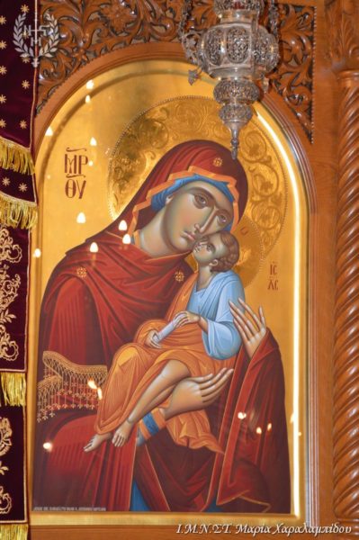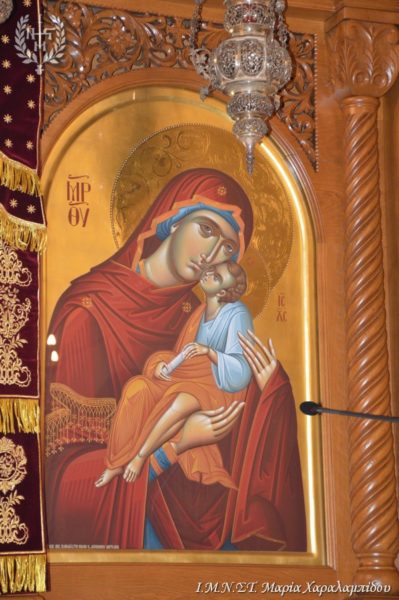 Ο Πανοσιολογιώτατος Αρχιμανδρίτης π. Συμεών Παπαγεωργίου με γλαφυρότητα απέδωσε τη σκηνή της αφιερώσεως της Υπεραγίας Θεοτόκου στο Ναό του Σολομώντος και την ένταξή της στην χορεία των παρθένων που διακονούσαν εκεί.