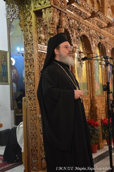 Ο Πανοσιολογιώτατος Αρχιμανδρίτης π. Συμεών Παπαγεωργίου έχοντας ως αφόρμηση το στίχο «τα των ανθρώπων ήθη κατεκόσμησας» ιχνογράφησε την ιερή προσωπικότητα του Αγίου Βασιλείου υπογραμμίζοντας την απόλυτη πίστη του και την αταλάντευτη εμπιστοσύνη του στο Θεό.