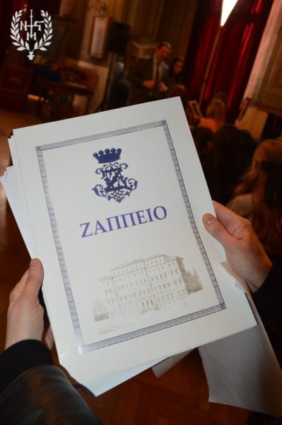 Τη συνάντηση άνοιξε ο θερμός χαιρετισμός της Διευθύντριας κ.Ρίκας Μπεκιάρη – Παντελάρα και ακολούθησαν μαθητές και μαθήτριες του Ζαππείου οι οποίοι ανέγνωσαν με έκφραση και σωστή έμφαση, υπό την καθοδήγηση των φιλολόγων κ.Κορνηλίας Τσεβίκ και Χριστίνας Γκοβέση, κείμενα αναφορικά με την ίδρυση και τους κανονισμούς λειτουργίας του Ζαππείου Παρθεναγωγείου.