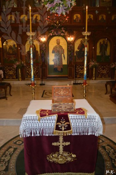 Μετά το πέρας της Θείας Λειτουργίας, ο Σεβασμιώτατος κ. Βαρνάβας, αφού ευχαρίστησε τον π. Νικόλαο Μοναστηρίδη για την αξιέπαινη μέριμνα που επέδειξε να διαφυλαχθεί και να τιμηθεί το ιερό λείψανο, τόνισε την ιδιαίτερη σημασία της σημερινής μέρας, η οποία σφραγίζεται με την τιμή και την μνήμη του Αγίου Αθανασίου του Τραπεζούντιου. (Ακολουθεί φωνητικό απόσπασμα με τα λόγια του Σεβασμιωτάτου κ.Βαρνάβα)