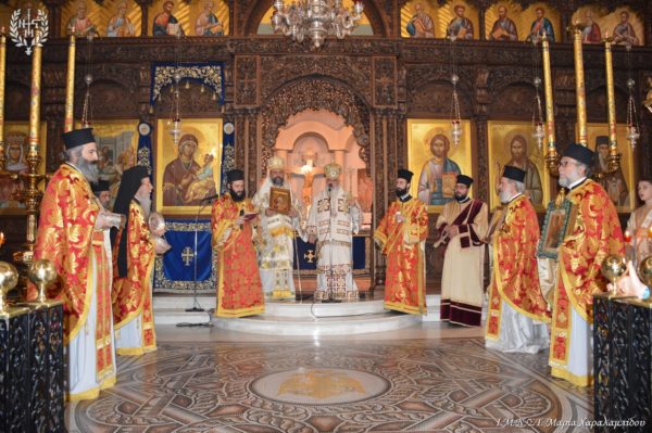 Στη δισαρχιερατική Θεία Λειτουργία ιερούργησαν ο Επαρχιούχος Θεοφιλέστατος Επίσκοπος Μπούνας –Κισαγκάνι π. Πολύκαρπος και ο Επιχώριος Μητροπολίτης Νεαπόλεως και Σταυρουπόλεως κ. Βαρνάβας.