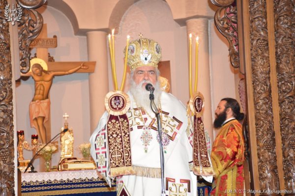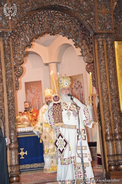Στη δισαρχιερατική Θεία Λειτουργία ιερούργησαν ο Επαρχιούχος Θεοφιλέστατος Επίσκοπος Μπούνας –Κισαγκάνι π. Πολύκαρπος και ο Επιχώριος Μητροπολίτης Νεαπόλεως και Σταυρουπόλεως κ. Βαρνάβας.