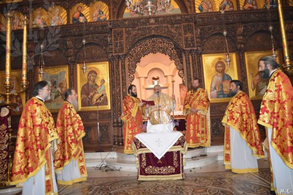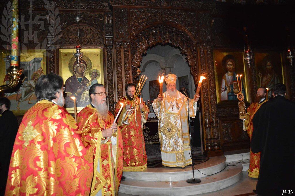 Ο Σεβασμιώτατος έψαλε πανηγυρικά τον νικητήριο παιάνα της Ορθόδοξης πίστης: το ΧΡΙΣΤΟΣ ΑΝΕΣΤΗ και διεκήρυξε στεντορεία τη φωνή τη θριαμβευτική νίκη του Υιού και Λόγου του Θεού εις πείσμαν όλων των, ανά τους αιώνες – εχθρών της Ανάστασης.