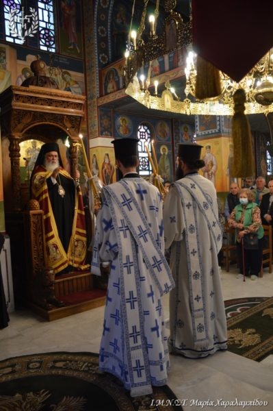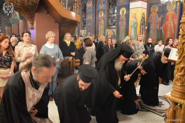 Ο Σεβασμιώτατος, στο κήρυγμά του, αναφέρθηκε στο μεγαλείο της ταπείνωσης της Θεοτόκου, καθώς και στη μεγάλη αρετή της υπακοής Της.