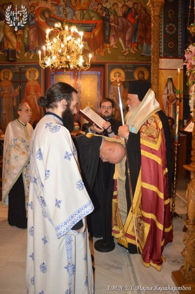Μετά το πέρας της ακολουθίας ο Σεβασμιώτατος έχρισε τον κ. Αθανάσιο Παγιούρα , ιεροψάλτη, αναγνώστη.