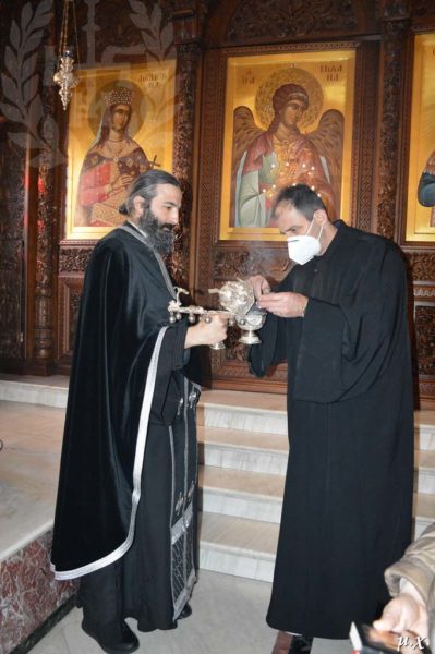 Ο Σεβασμιώτατος ευχαρίστησε τον κύριο Δήμο Παπατζαλάκη για την εξαιρετική απόδοση του τροπαρίου της Κασσιανής καθώς επίσης και τον λαμπαδάριο του Ναού .