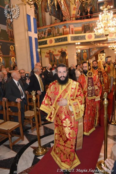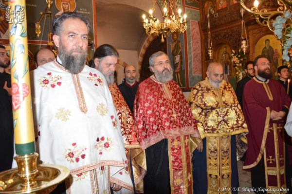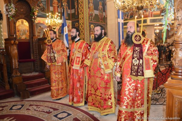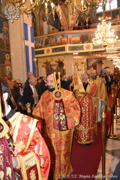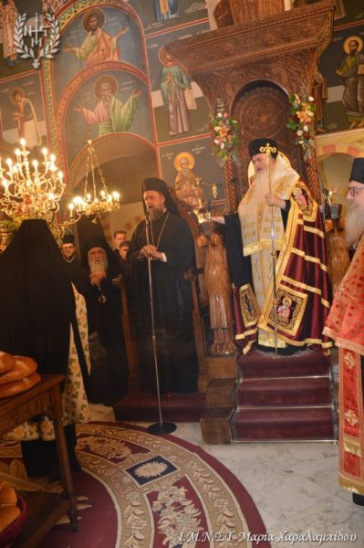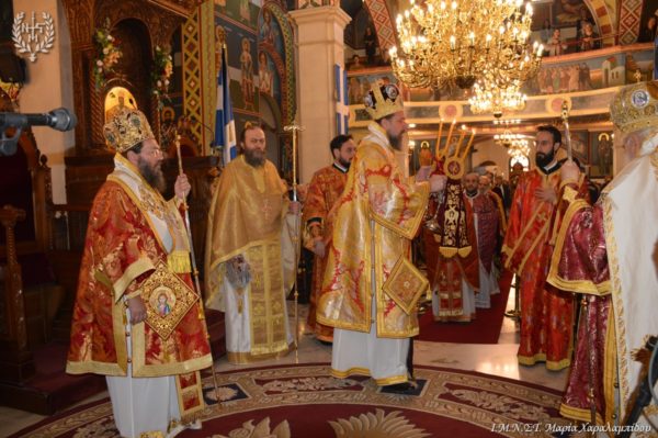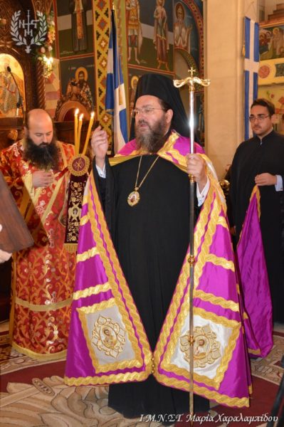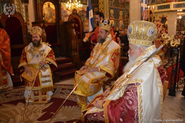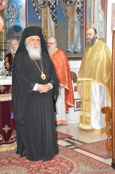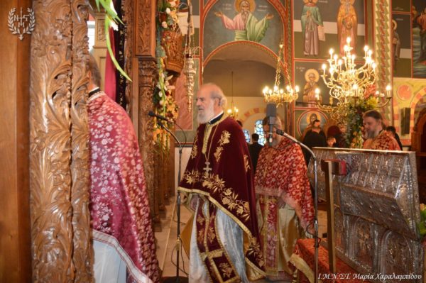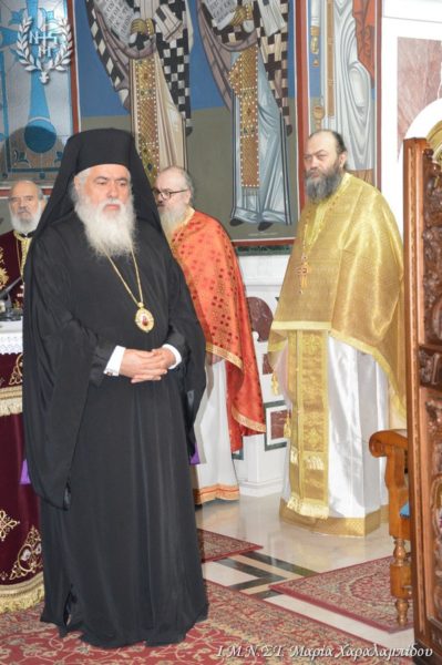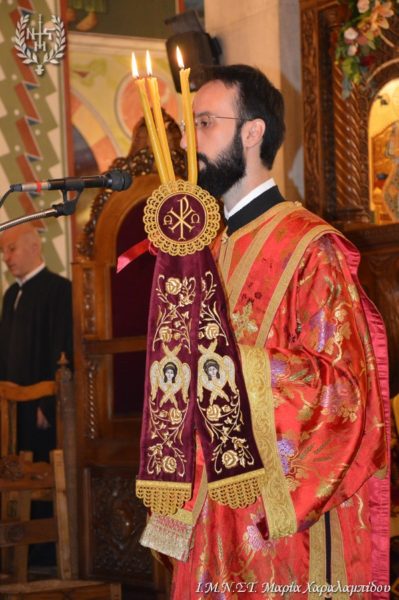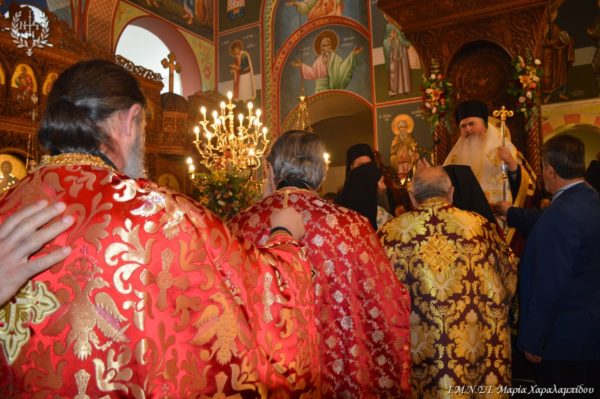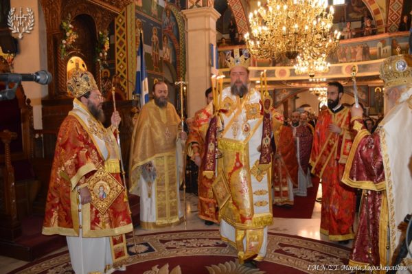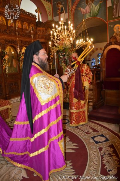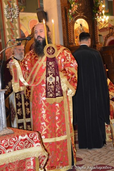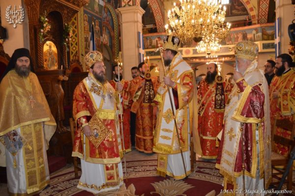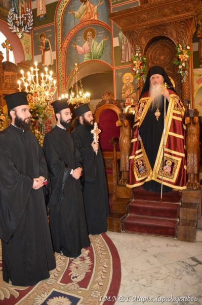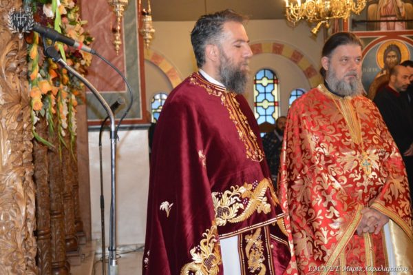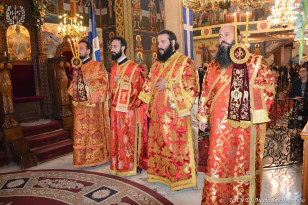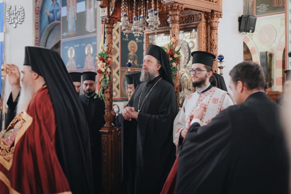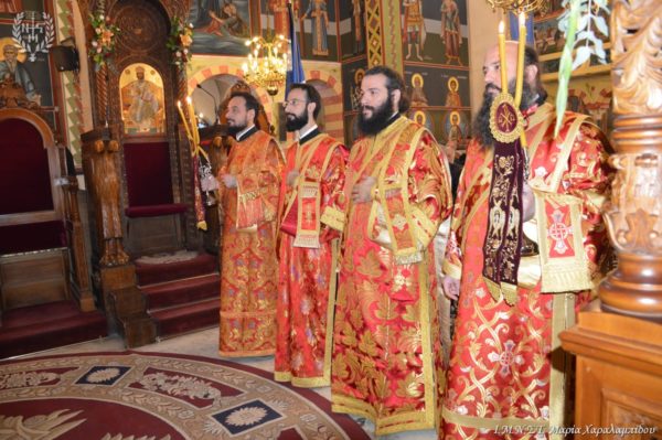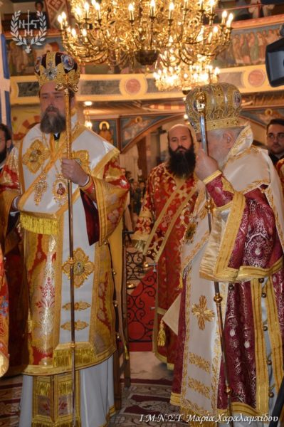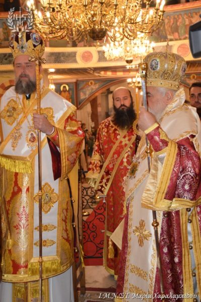 Συγχοροστατούντες παρίσταντο ο Παναγιώτατος Μητροπολίτης Θεσσαλονίκης κ. Φιλόθεος και ο Σεβασμιώτατος Μητροπολίτης Πολυανής και Κιλκισίου κ. Βαρθολομαίος καθώς και ο επιχώριος Μητροπολίτης Νεαπόλεως και Σταυρουπόλεως κ. Βαρνάβας.