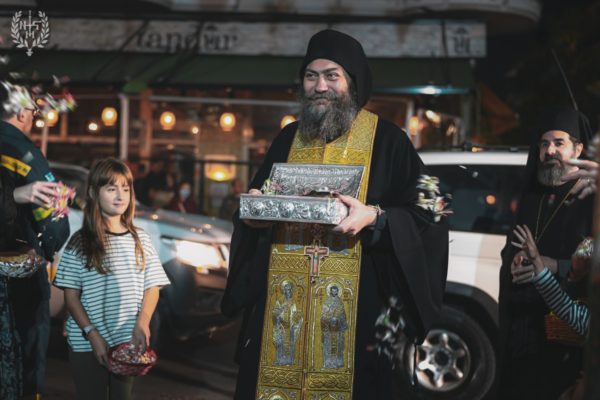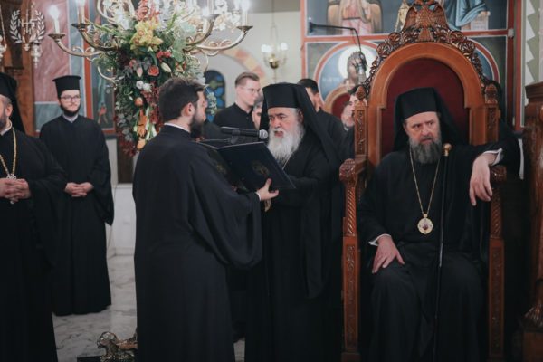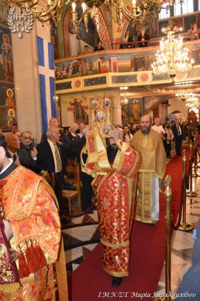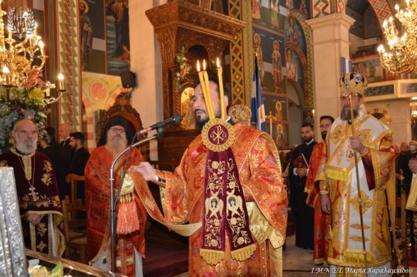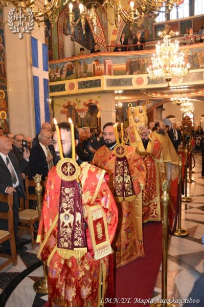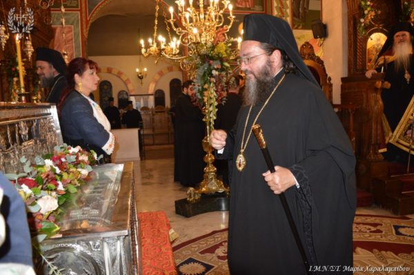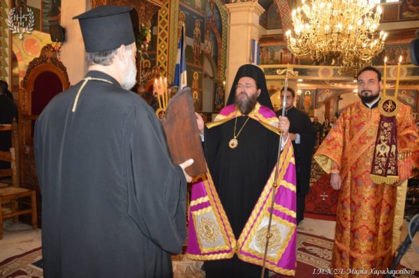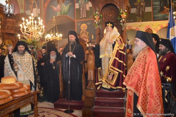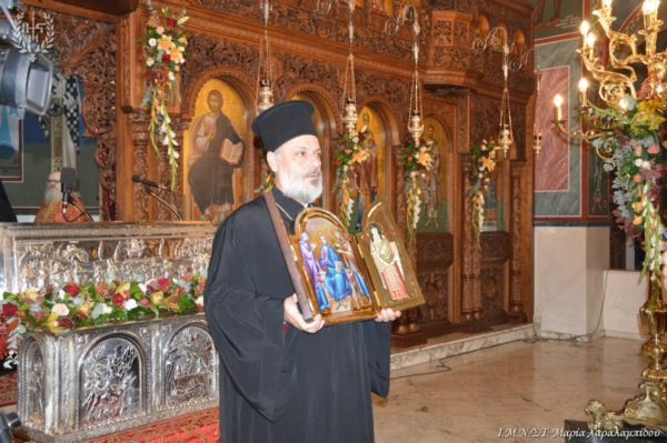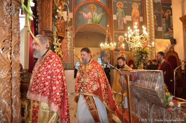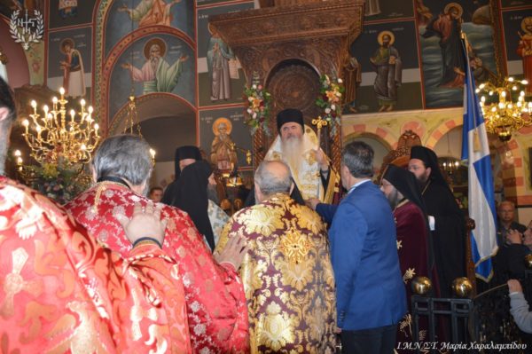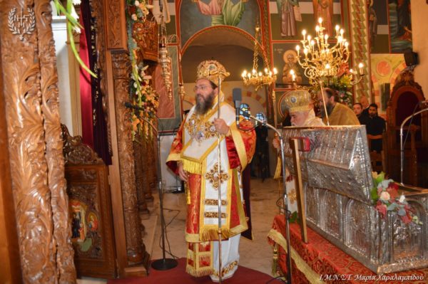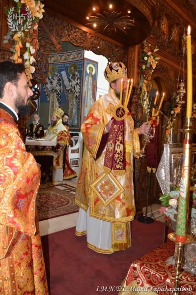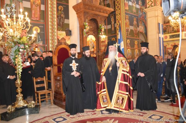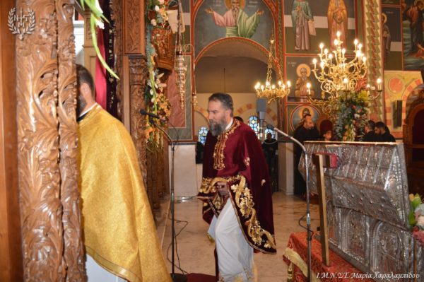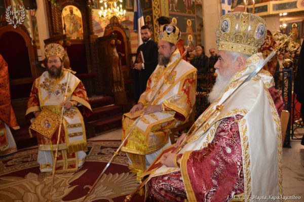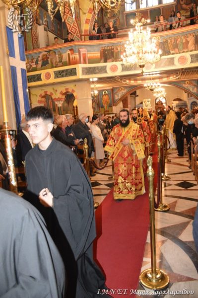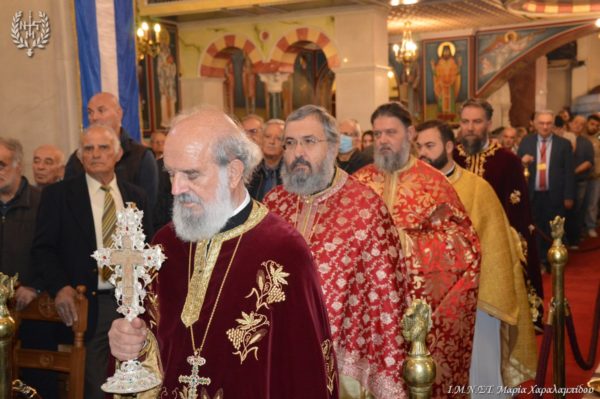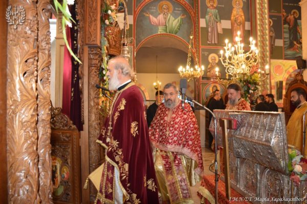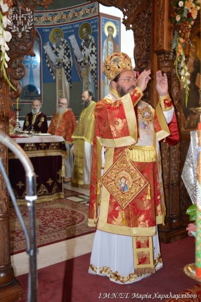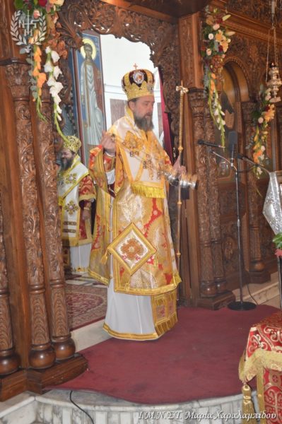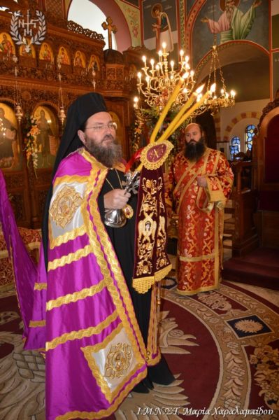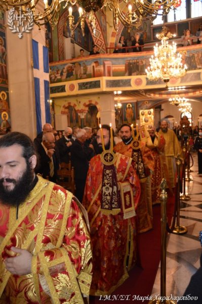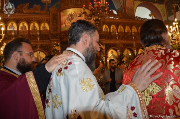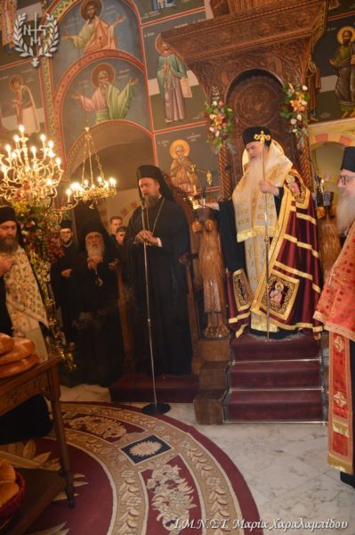 Συγχοροστατούντες παρίσταντο ο Παναγιώτατος Μητροπολίτης Θεσσαλονίκης κ. Φιλόθεος και ο Σεβασμιώτατος Μητροπολίτης Πολυανής και Κιλκισίου κ. Βαρθολομαίος καθώς και ο επιχώριος Μητροπολίτης Νεαπόλεως και Σταυρουπόλεως κ. Βαρνάβας.