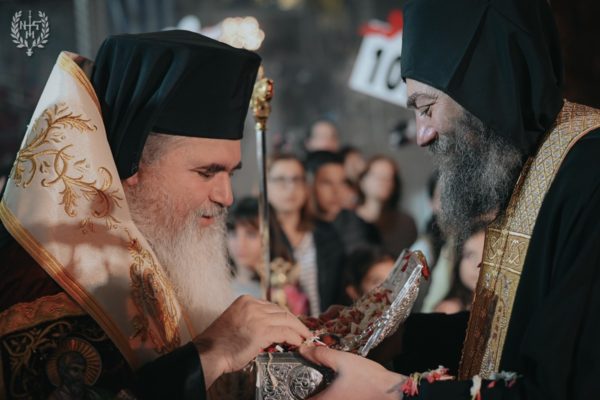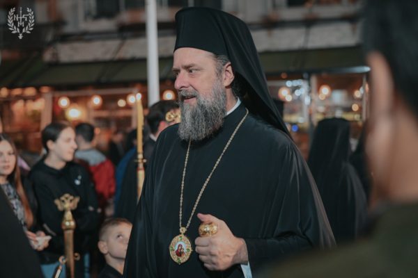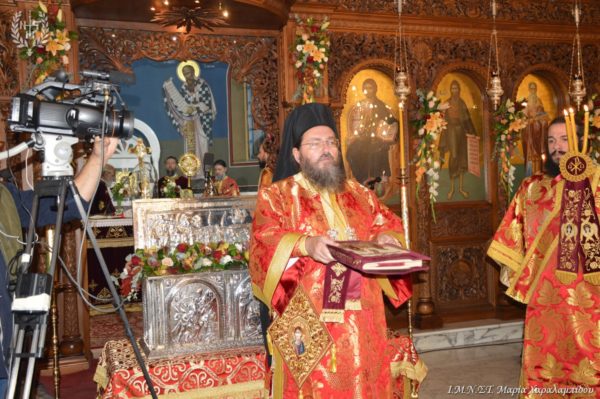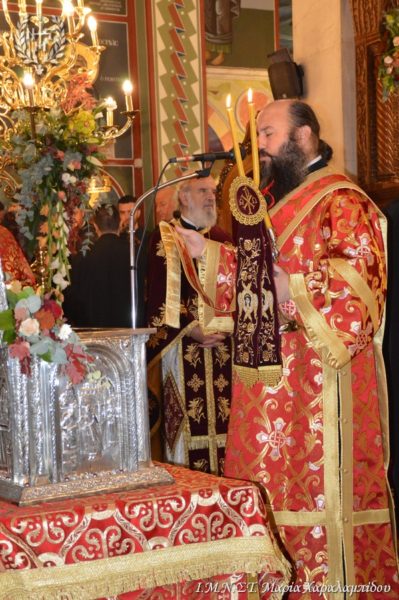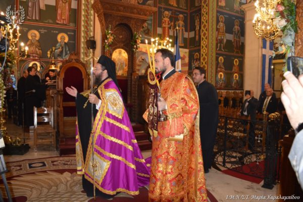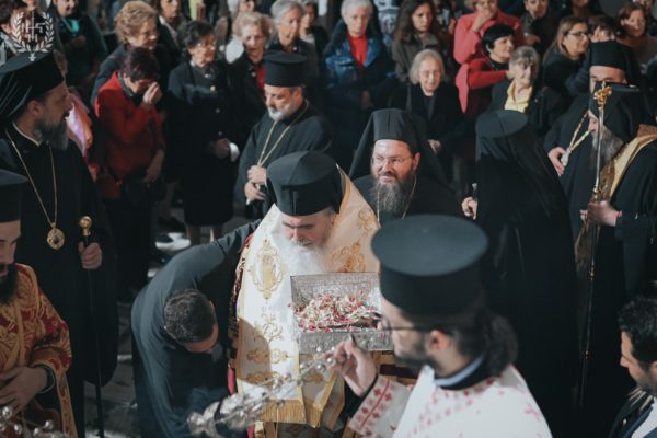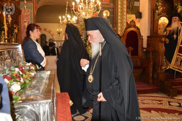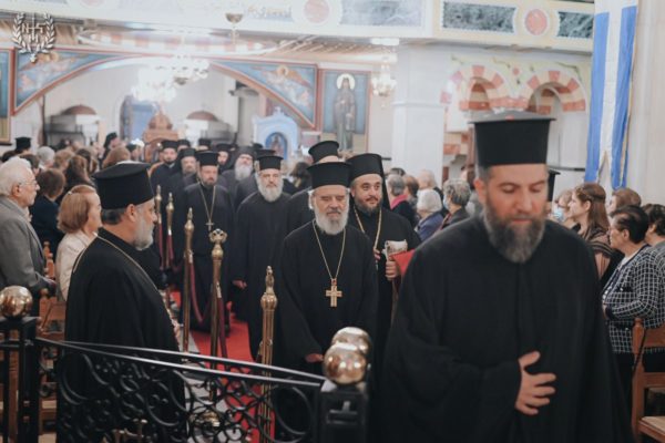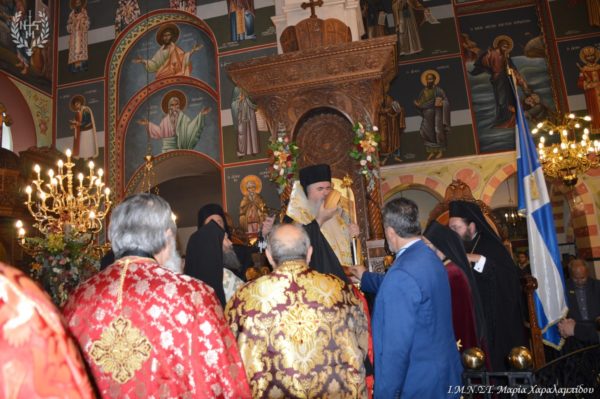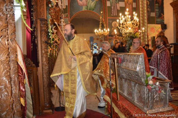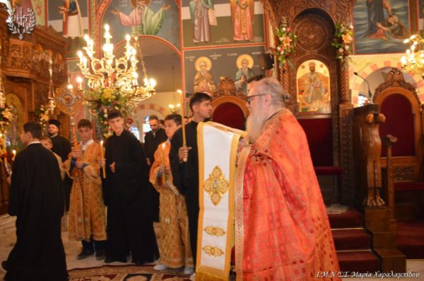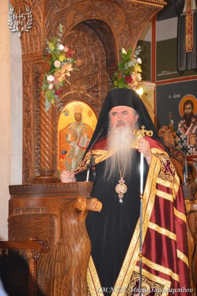 Στην Ακολουθία του Εσπερινού χοροστάτησε ο Σεβασμιώτατος Μητροπολίτης Νέας Κρήνης και Καλαμαριάς κ. Ιουστίνος, ο οποίος αρθρώνοντας γνήσια πατερικό λόγο παρουσίασε ενώπιον του πολυπληθούς εκκλησιάσματος τη δύναμη της ενότητας της Εκκλησίας και τη σωτηριολογική αποστολή της.