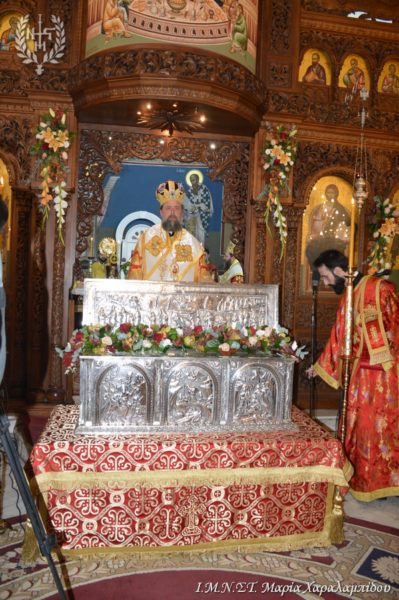 Επιστέγασμα της λαμπρής Πανηγύρεως υπήρξε η Τρισαρχιερατική Θεία Λειτουργία η οποία τελέστηκε την Κυριακή 3 Νοεμβρίου 2024 και στην οποία προέστη ο Μητροπολίτης Θεσσαλονίκης με συλλειτουργούντες τον Μητροπολίτη Πολυανής και Κιλκισίου και τον Μητροπολίτη Νεαπόλεως και Σταυρουπόλεως.