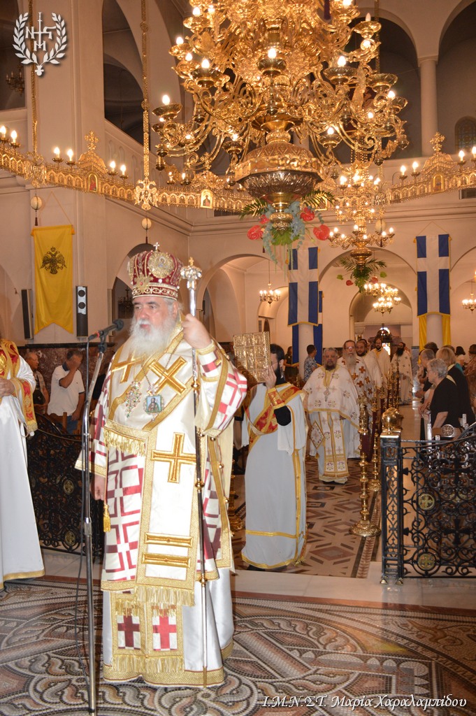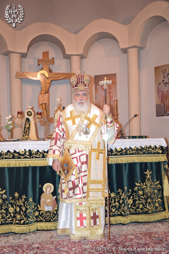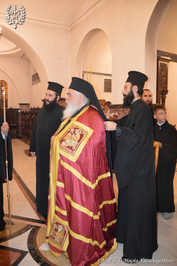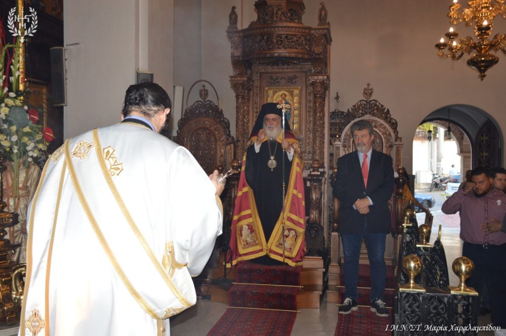 Πριν από την ακολουθία του Εσπερινού, πραγματοποιήθηκε υποδοχή αποτμήματος του Τιμίου Σταυρού το οποίο φυλάσσεται στο σκευοφυλάκιο του Επισκοπείου.