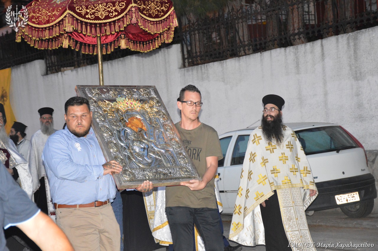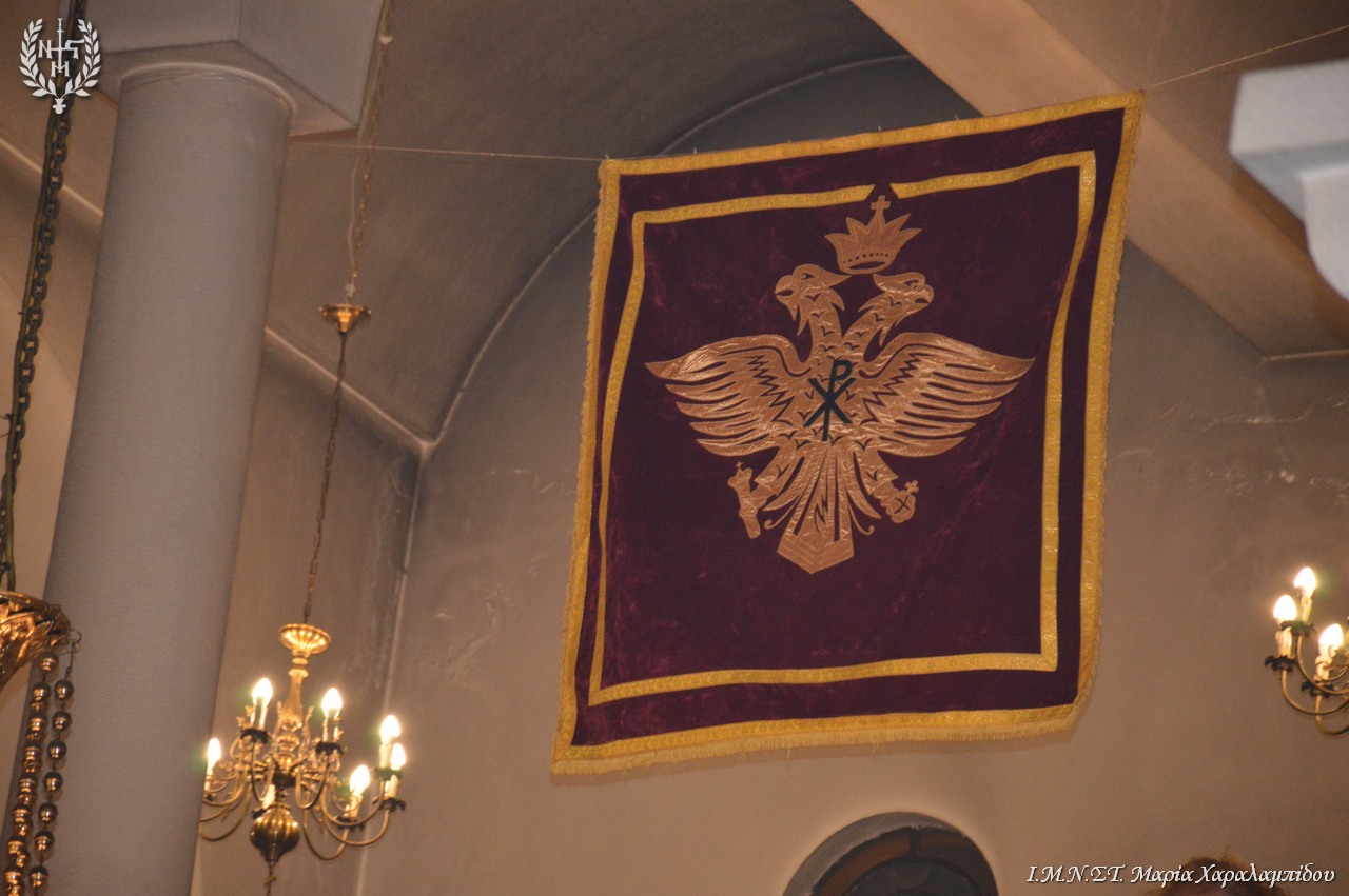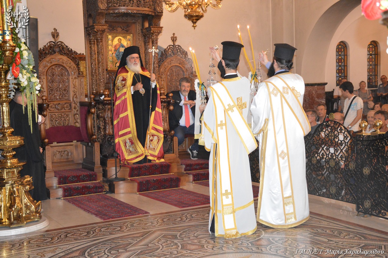 Πριν από την ακολουθία του Εσπερινού, πραγματοποιήθηκε υποδοχή αποτμήματος του Τιμίου Σταυρού το οποίο φυλάσσεται στο σκευοφυλάκιο του Επισκοπείου.