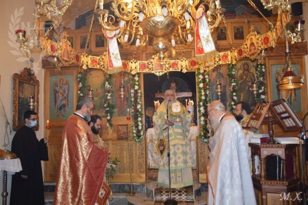 Στο τέλος, ο Σεβασμιώτατος ευχήθηκε στο εκκλησίασμα η Χάρις του Παναγίου Πνεύματος να επισκιάσει τον κάθε πιστό χωριστά και να τού χαρίσει τους θεοειδείς καρπούς Του.