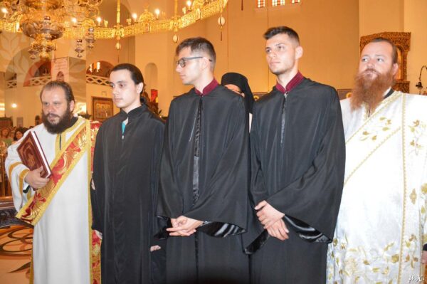 Στο τέλος του Εσπερινού, ο Σεβασμιώτατος χειροθέτησε αναγνώστες τρεις νεαρούς, οι δυο εκ των οποίων είναι φοιτητές του Πολυτεχνείου και του Φυσικού Τμήματος του Α.Π.Θ, ενώ ο τρίτος είναι μαθητής της Γ Λυκείου.
