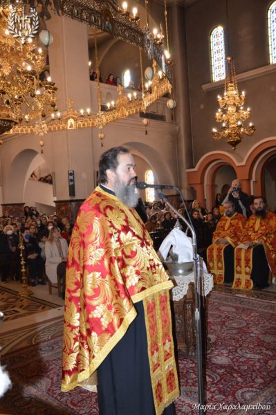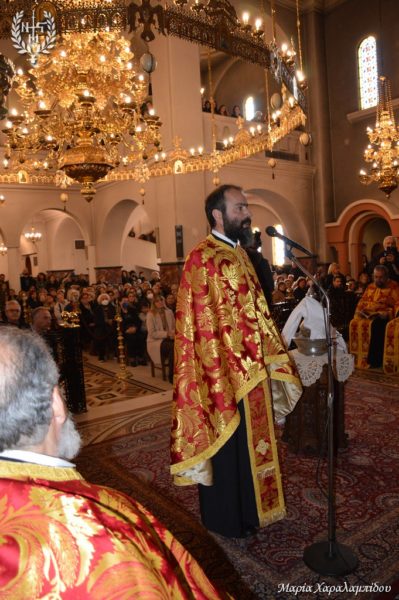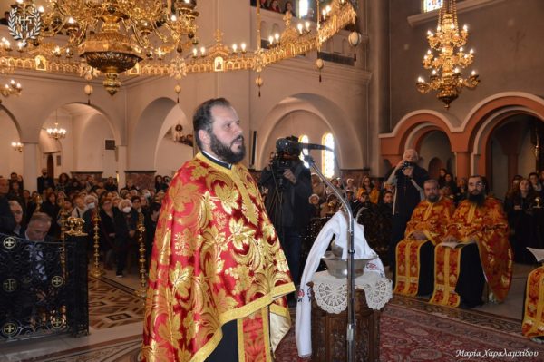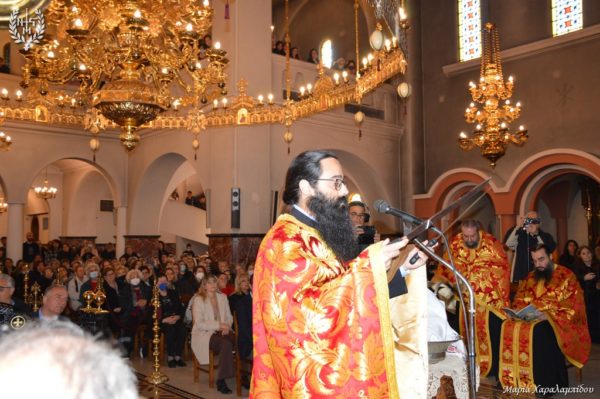 Ομιλητής στην ακολουθία ήταν ο πρωτοπρεσβύτερος π. Γεώργιος Μίλκας ο οποίος επικεντρώθηκε στη νύχτα της αγωνίας στη Γεσθημανή και στο τρομερό βίωμα της μοναξιάς του Κυρίου: «οΧριστός νιώθει έναν άφατο πόνο. Τα έδωσε όλα για τους άλλους και εισέπραξε μίσος. Μοναξιά γεμάτη αχαριστία. Οι μαθητές Του τον άφησαν μόνον στην προσπάθειά τους να σώσουν τον εαυτό τους, ενώ ο Κύριος έσωσε όλον τον κόσμο. Τις ώρες της μοναξιάς μας μάς πληγώνει η εγκατάλειψη των δικών μας που οφείλεται είτε στη φιλαυτία είτε στην ιδιοτέλεια. Για τούτο το λόγο ο Θεός πλάθει την Εύα για να έχει ο Αδάμ συμπαραστάτη. Στην πατερική παράδοση η κόλαση είναι μοναξιά. Γεννάται εύλογα το ερώτημα πώς αντιμετωπίζεται η μοναξιά σε καιρούς εγωκεντρισμού; Ο ίδιος ο παντοδύναμος Θεός είναι συμπαρών και συμμαχητής. Όποιος ντυθεί την ταπείνωση ελκύει τη χάρη και τη δύναμη του Θεού!»