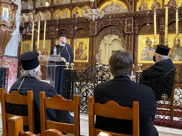 Κύριος ομιλητής ήταν ο Πανοσ. Αρχιμ. Θεολόγος Αλεξανδράκης αναπληρωτής Διευθυντής του Ιδρύματος Ποιμαντικής Επιμορφώσεως. Ο πατήρ Θεολόγος ενημέρωσε σχετικά με το πρόγραμμα Δια Βίου Μάθησης του Ανθρωπίνου Δυναμικού της Εκκλησίας και την ανάπτυξη ανοιχτών Διαδικτυακών Μαθημάτων σε 20 θεματικές επιμορφωτικές ενότητες. Ο Σεβασμιώτατος ευχαρίστησε τον Αρχιεπίσκοπο Αθηνών ως πρόεδρο του ΙΠΕ αλλά και όλο το ΔΣ, όπως επίσης και τον πατέρα Θεολόγο για την παρουσία του και την ενεργό δράση του στο πρόγραμμα επιμόρφωσης.
