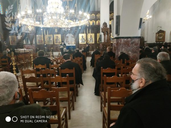 Κατά την έναρξη της Σύναξης, τελέστηκε τρισάγιο για την ανάπαυση της ψυχής του μακαριστού π. Διονυσίου Σκαρκαλά, κληρικού της Μητροπόλεως, και έλαβε χώρα η καθιερωμένη κοπή της Βασιλόπιτας.