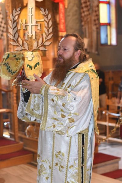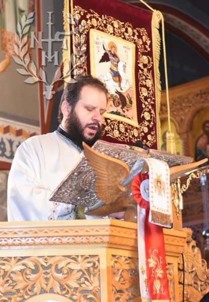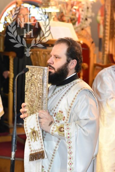 Επίσης, στο τέλος της Θείας Λειτουργίας, ευχαρίστησε τους πατέρες και τους συνεργάτες της ενορίας για τη φιλοξενία, και παρουσίασε με κάθε επισημότητα τον νέο προϊστάμενο της ενορίας του Καλοχωρίου, Πανοσιολογιώτατο Αρχιμανδρίτη π. Νεκτάριο Κικιρίκη, ο οποίος διαδέχθηκε τον προ ολίγων μηνών κοιμηθέντα πατέρα Ευδόκιμο Θεοδωρίδη.