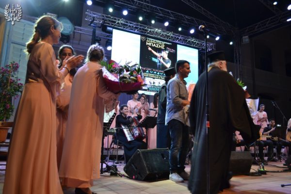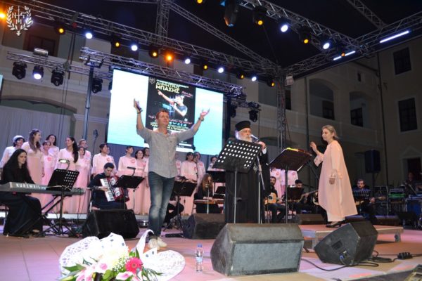 Ιδιαίτερης σημειολογίας ήταν η στιγμή που πάνω στη σκηνή ο Σεβασμιώτατος κ. Βαρνάβας μαζί με τον φιλοξενούμενο Σεβασμιώτατο Προύσης κ. Ιωακείμ και τους Δημάρχους Θεσσαλονίκης, Κωνσταντίνο Ζέρβα, Παύλου Μελά, Δημήτρη Δεμουρτζίδη, Αμπελοκήπων – Μενεμένης, Λάζαρο Κυρίζογλου και την Ευρωβουλευτή Μαρία Σπυράκη συμμετείχαν στην απόδοση του εμβληματικού τραγουδιού «Της δικαιοσύνης ήλιε νοητέ», που ερμήνευε με τρόπο μοναδικό ο καλλιτέχνης.