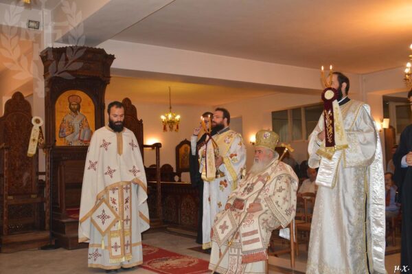 Μετά το πέρας της Θείας Λειτουργίας, ο Προΐστάμενος του Ιερού Ναού, π. Ιωάννης Κρητικόπουλος, ευχαρίστησε το Σεβασμιώτατο για την ευλογητική παρουσία Του και ενημέρωσε για την εξέλιξη των εργασιών του ανεγειρόμενου Ναού.