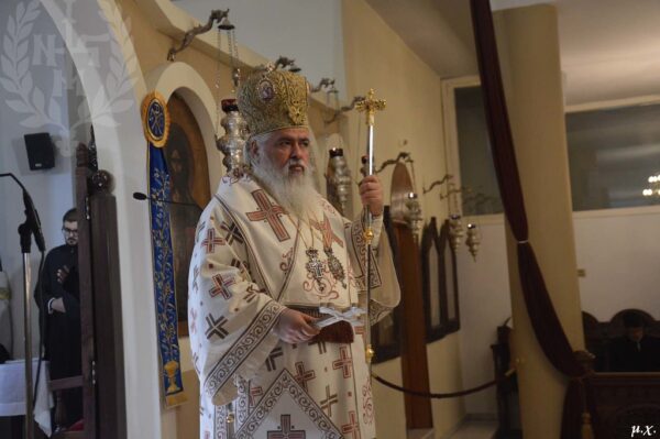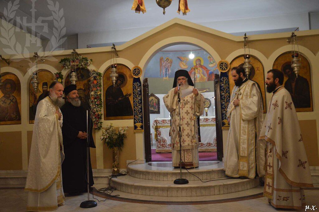Μετά το πέρας της Θείας Λειτουργίας, ο Προΐστάμενος του Ιερού Ναού, π. Ιωάννης Κρητικόπουλος, ευχαρίστησε το Σεβασμιώτατο για την ευλογητική παρουσία Του και ενημέρωσε για την εξέλιξη των εργασιών του ανεγειρόμενου Ναού.