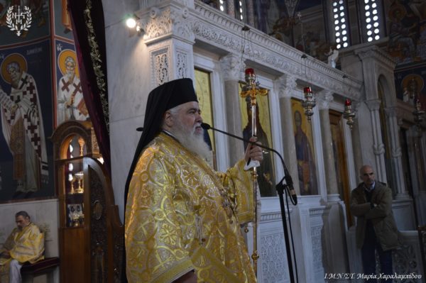 Ο Σεβασμιώτατος, στο κήρυγμά του, ανέλυσε την ευαγγελική περικοπή, στην οποία πρωταγωνιστούσε ένας άφρονας πλούσιος.