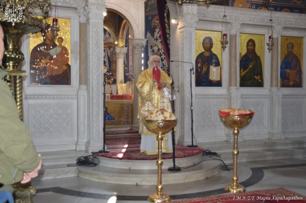 Ο Σεβασμιώτατος, στο κήρυγμά του, ανέλυσε την ευαγγελική περικοπή, στην οποία πρωταγωνιστούσε ένας άφρονας πλούσιος.