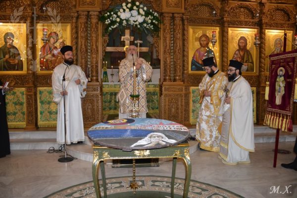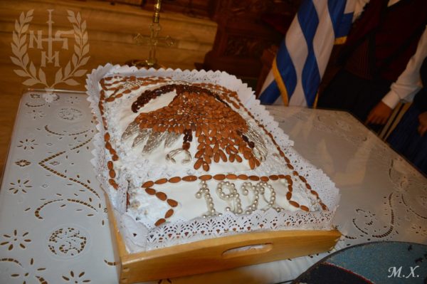 Μετά το πέρας της Θείας Λειτουργίας, ο Σεβασμιώτατος τέλεσε τρισάγιο στη μνήμη των αδίκως αναιρεθέντων και αδίκως εκδιωχθέντων, κατά τη Μικρασιατική καταστροφή, από τις πατρογονικές εστίες αιώνων. Ακολούθησε κατάθεση στεφανιών στο μνημείο που δεσπόζει στον αύλειο χώρο του Ιερού Ναού.