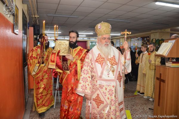 Στο 3ο Δημοτικό Σχολείο Σταυρούπολης, το οποίο πάνω από 10 χρόνια κάθε Κυριακή μεταπλάθει ένα χώρο του σε Ιερό Ναό για να εξυπηρετήσει τις λατρευτικές ανάγκες των περιοίκων, ιερούργησε ο Σεβασμιώτατος Μητροπολίτης Νεαπόλεως και Σταυρουπόλεως κ. Βαρνάβας την Κυριακή 24 Νοεμβρίου 2024 παραμονή της εορτής της πανευφήμου και πανσόφου Νύμφης του Χριστού Αγίας Αικατερίνης.