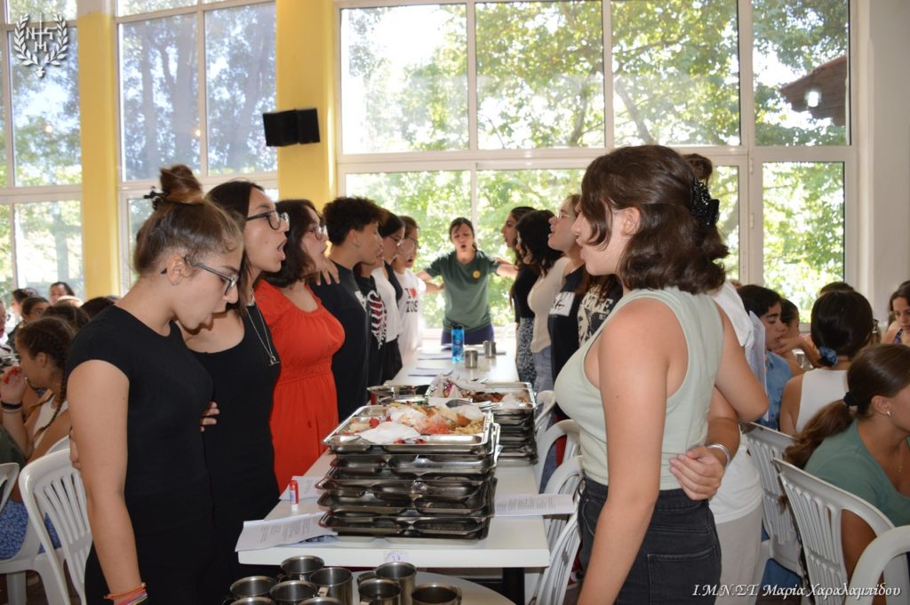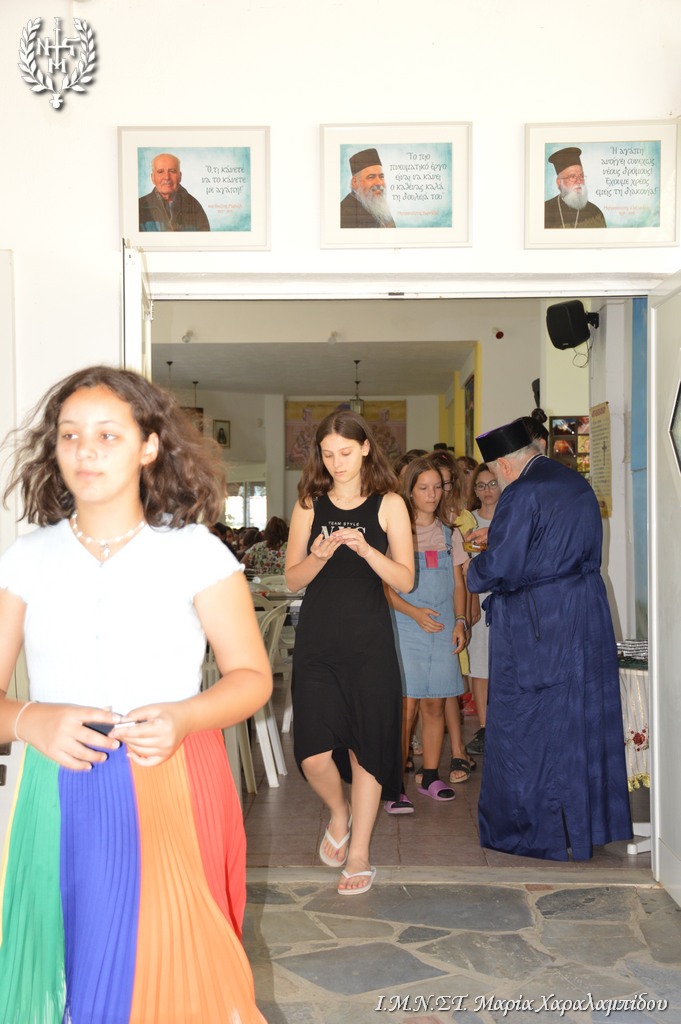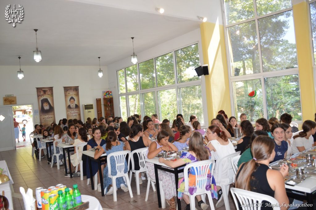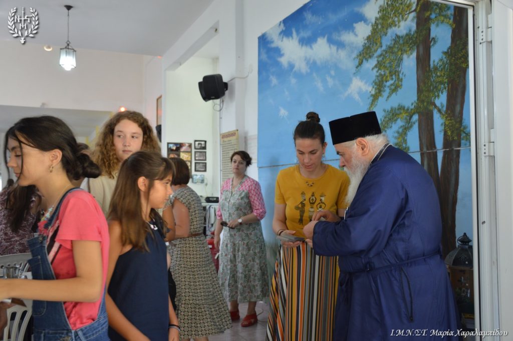 Οι 200 κατασκηνώτριες Γυμνασίου και Λυκείου υποδέχθηκαν το Σεβασμιώτατο και τη συνοδεία του με έκδηλη χαρά και παρουσίασαν ένα όμορφο πρόγραμμα με τραγούδια, χορό, με ταχυδακτυλουργικά και κωμικές παντομίμες.