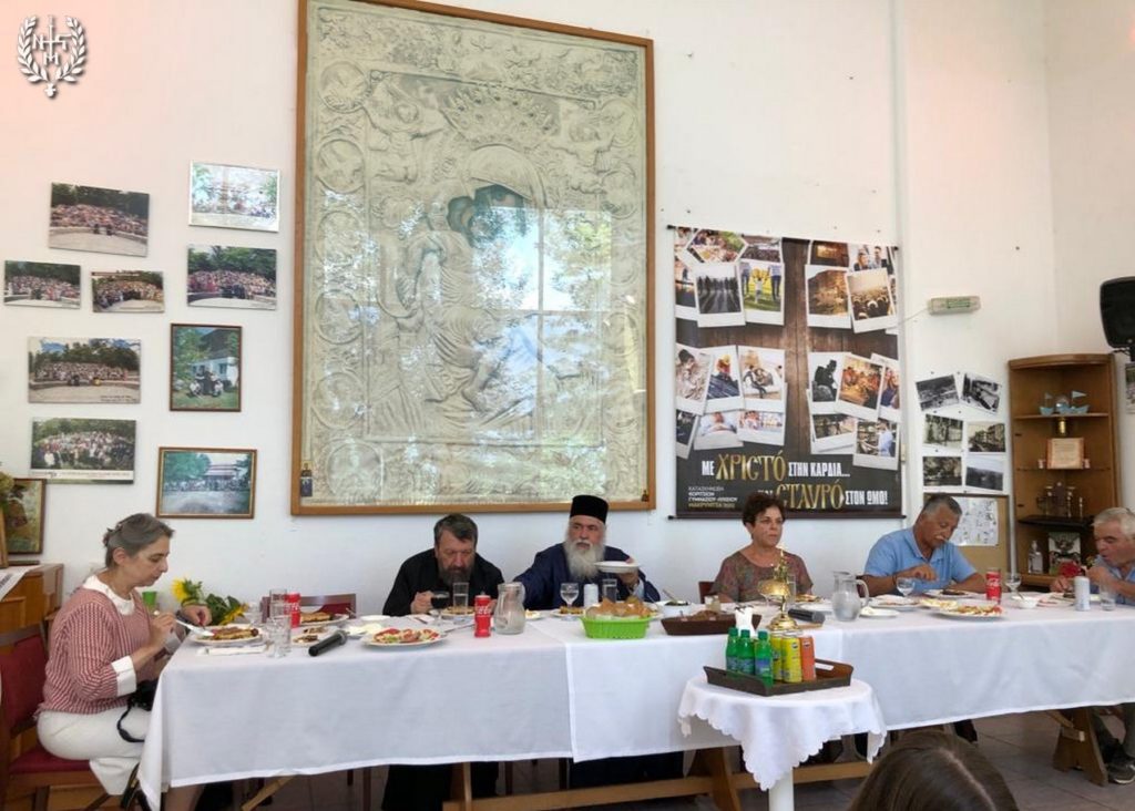 Ο πνευματικός προϊστάμενος της Κατασκήνωσης π. Γεώργιος Μίλκας ενημέρωσε τον Επίσκοπο της Δυτικής Θεσσαλονίκης για το σύνθημα της περιόδου: «με το Χριστό στην καρδιά και το σταυρό στον ώμο».