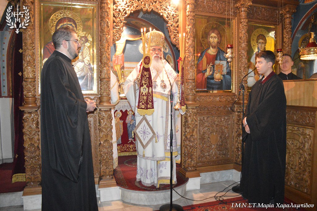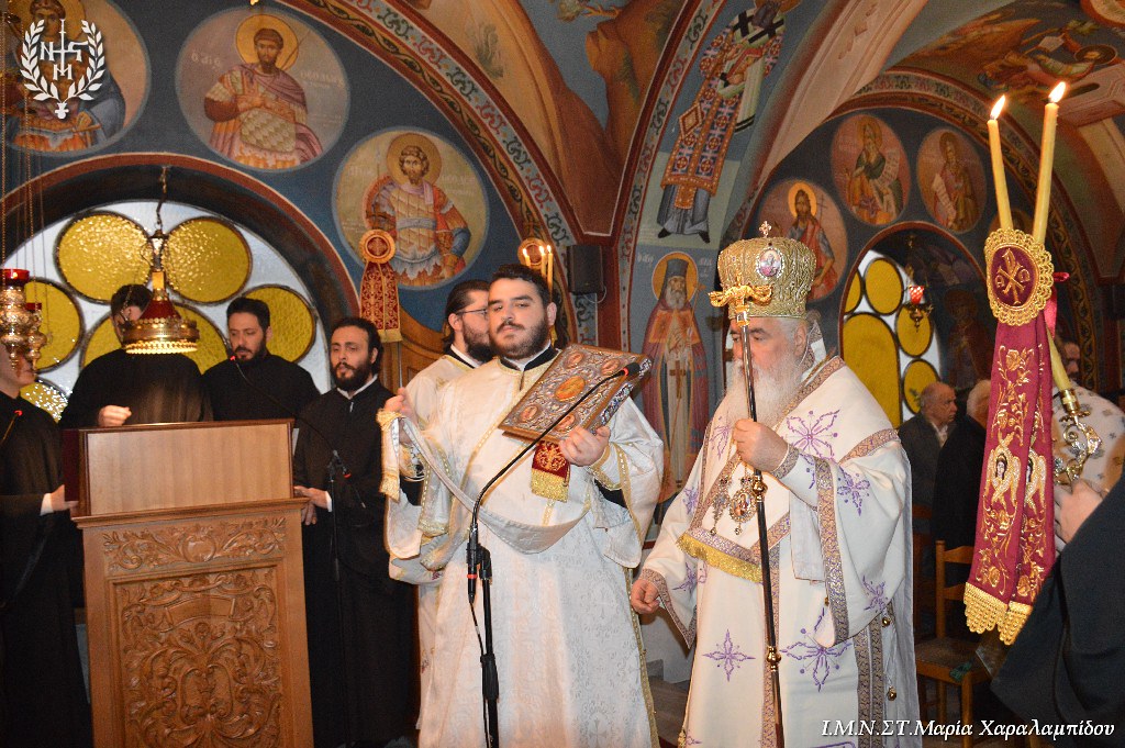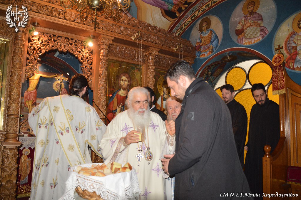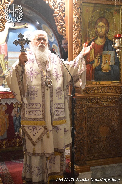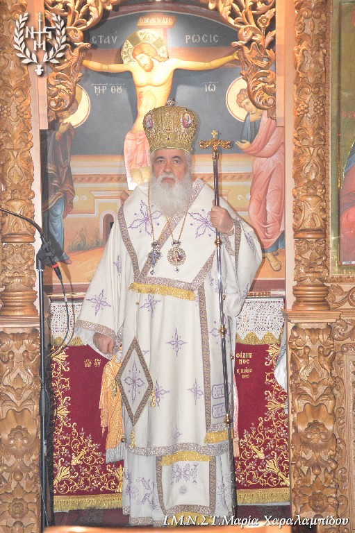 Ο Σεβασμιώτατος, στο κήρυγμά του, επεσήμανε τα εξής: “Ο λειτουργικός χρόνος μάς αποκαλύπτει τον κόσμο των Αγίων. Οι διάφορες γιορτές είναι η αποκάλυψη του κόσμου της Βασιλείας του Θεού. Διανύουμε την κατανυκτική περίοδο του Τριώδιου. Στη σημερινή Ευαγγελική Περικοπή ο Χριστός φανερώνεται μέσα στη δόξα Του . Η Ευαγγελική Περικοπή γεννά ερωτήματα: είναι δικαστής ο Χριστός; Ποιο είναι το Σύνταγμα με το οποίο θα κρίνει τους ανθρώπους; Το κριτήριο είναι η αγάπη. Γνώμονας είναι το πόσο αγαπήσαμε. Κριτήριο είναι η διακονία του ελάχιστου αδελφού. Το κριτήριο της αγάπης ανατρέπει τα δεδομένα: τα κεκτημένα δικαιώματα. Η Εκκλησία εμφανίζει έναν νέο κόσμο: τον κόσμο της διακονίας.