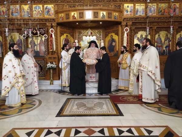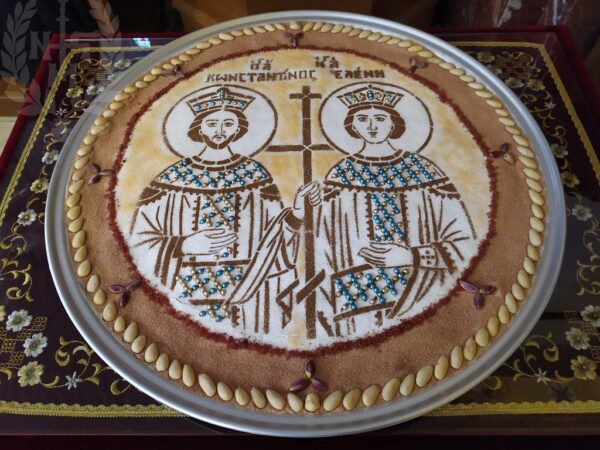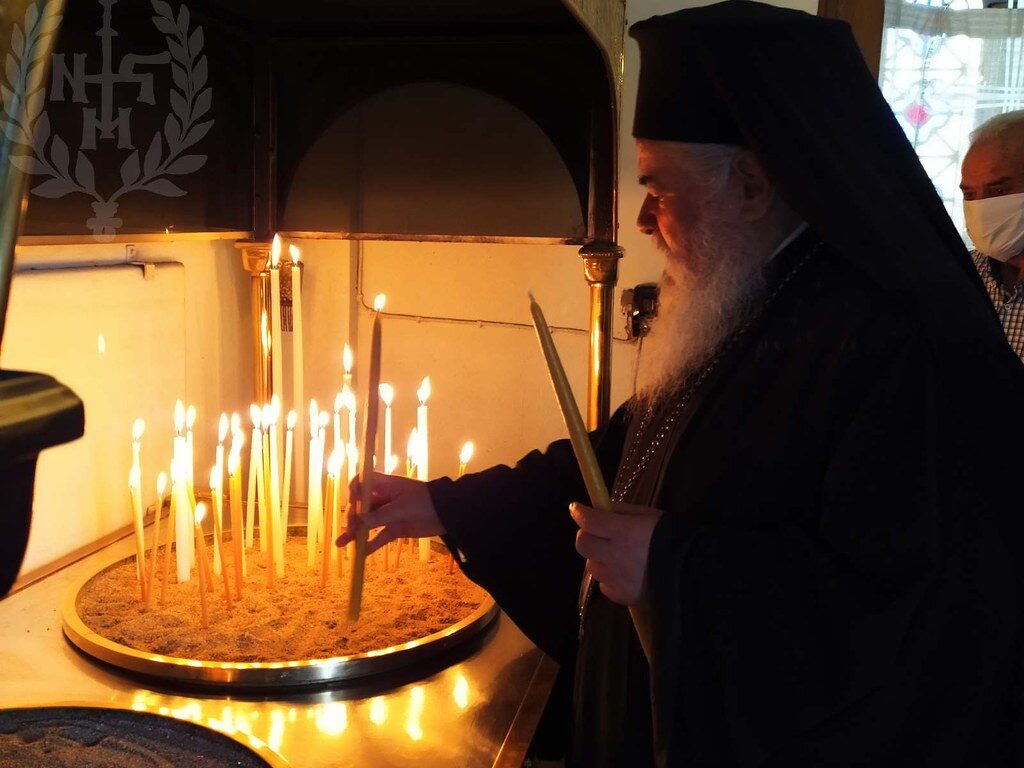 Ανήμερα, Πέμπτη 21 Μαΐου 2020, της γιορτής των Αγίων Κωνσταντίνου και Ελένης ο Σεβασμιώτατος ιερούργησε στον ομώνυμο Ιερό Ναό. Τη διακονία του λόγου είχε ο π.Στυλιανός Αναστασόπουλος.