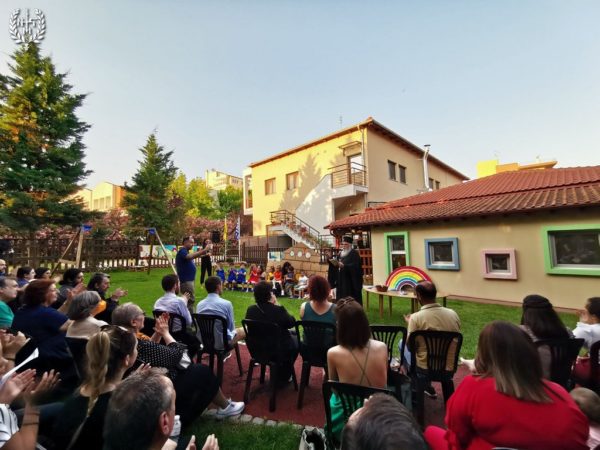 Η Διευθύντρια του Σταθμού, κ. Μαρία Χορέβα, καλωσόρισε τον Σεβασμιώτατο και τους γονείς των παιδιών και παρέδωσε την όμορφη αυλή στις δασκάλες και τα παιδιά για να παρουσιάσουν όλα όσα είχαν ετοιμάσει.