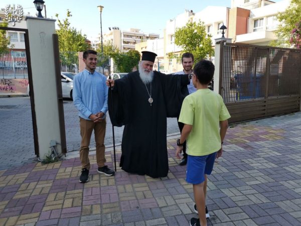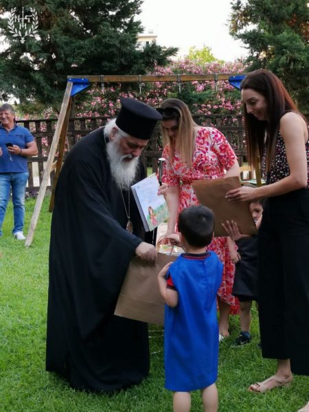 Στο τέλος της γιορτής, ο Σεβασμιώτατος μίλησε στοργικά στα παιδιά και μοίρασε τα ενθύμια και τα δώρα!