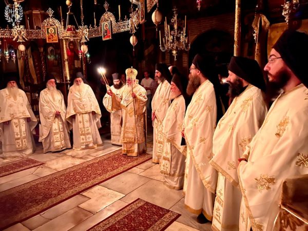 Η Ιερά Αγρυπνία άρχισε το απόγευμα με τον Μεγάλο Εσπερινό, συνεχίστηκε με τον Όρθρο και κορυφώθηκε το πρωί της κυριωνύμου ημέρας με την τέλεση της Αρχιερατικής Θείας Λειτουργίας της Χειροτονίας καθώς και Αρχιερατικό μνημόσυνο για πατέρες της Σκήτεως.