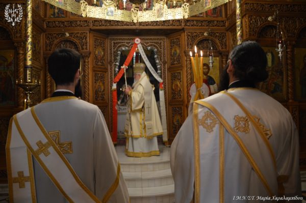 Μετά το πέρας της Θείας Λειτουργίας, πραγματοποιήθηκε η λιτάνευση της Ιεράς Εικόνας της Οδηγήτριας προεστώτος του Σεβασμιωτάτου κ. Βαρνάβα.