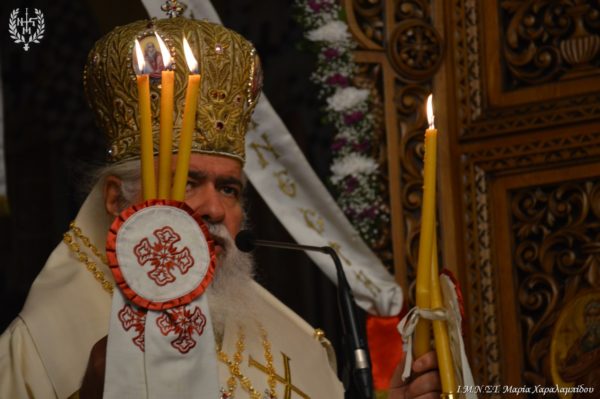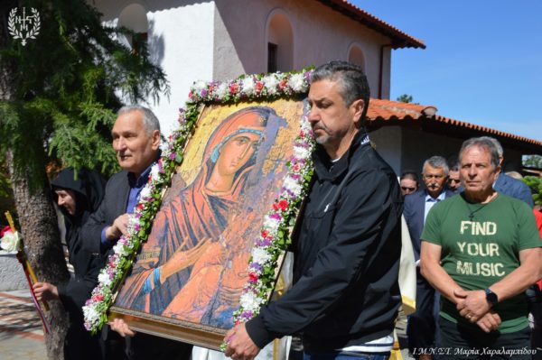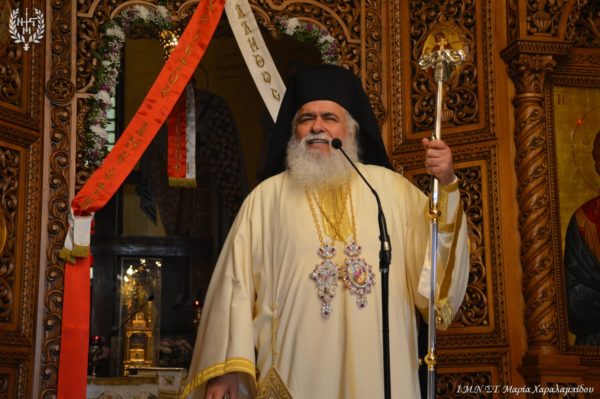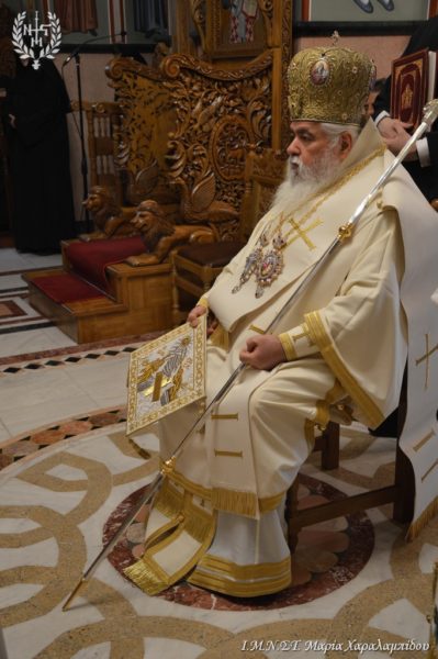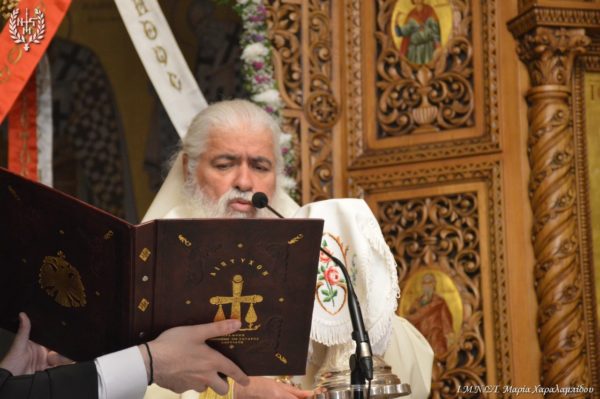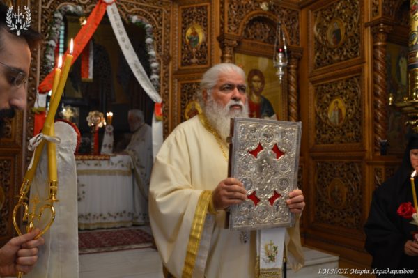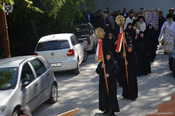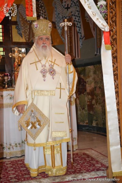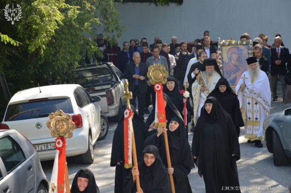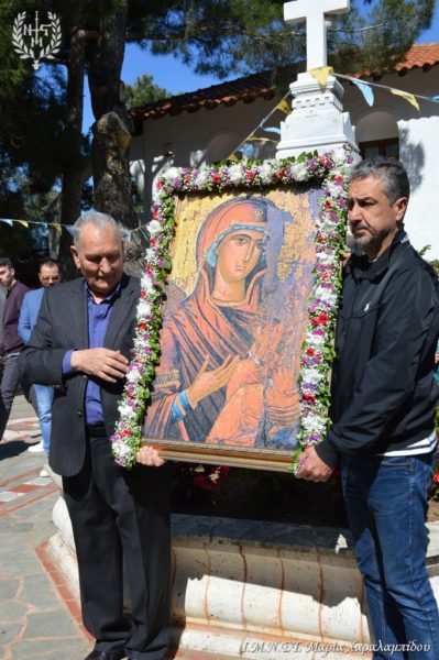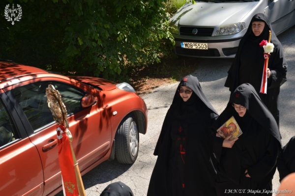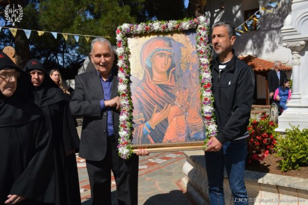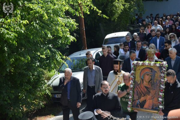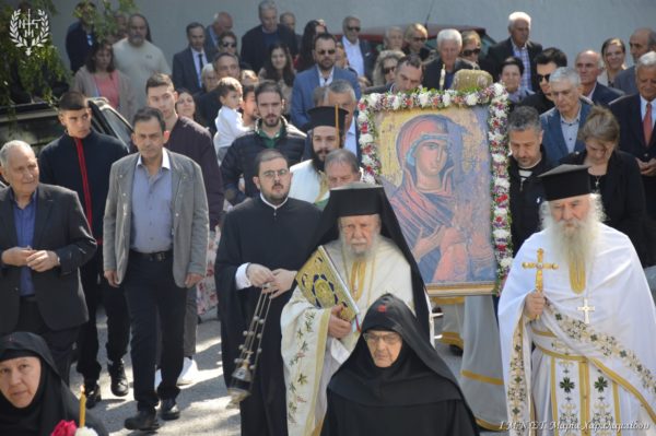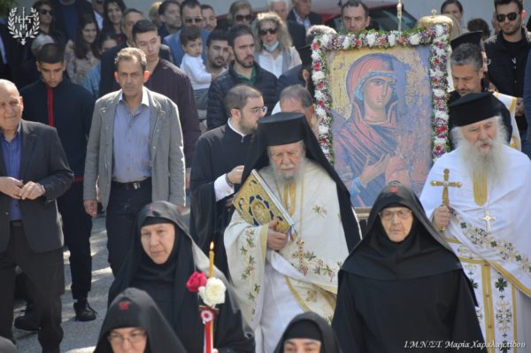 Μετά το πέρας της Θείας Λειτουργίας, πραγματοποιήθηκε η λιτάνευση της Ιεράς Εικόνας της Οδηγήτριας προεστώτος του Σεβασμιωτάτου κ. Βαρνάβα.