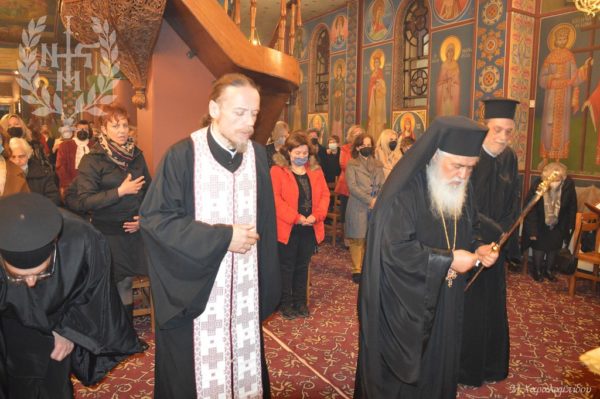 Στον Ιερό Ναό Κοιμήσεως της Θεοτόκου στο Ωραιόκαστρο τελέστηκε την Παρασκευή 1 Απριλίου 2022 η Δ’ Στάση των Χαιρετισμών χοροστατούντος του Σεβασμιωτάτου Μητροπολίτη Νεαπόλεως και Σταυρουπόλεως κ. Βαρνάβα.